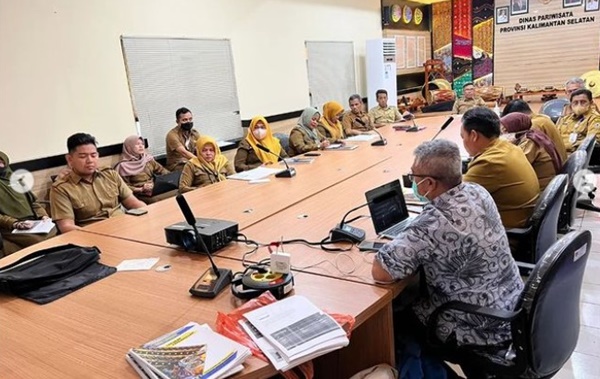 Rapat akhir tahun yang dilaksanakan di Ruang Rapat Dispar Kalsel Jalan S Parman Kota Banjarmasin, dihadiri oleh sejumlah Kepala Dinas yang membidangi Pariwisata dan Ekonomi Kreatif dari 13 Kabupaten dan Kota se Kalimantan Selatan.