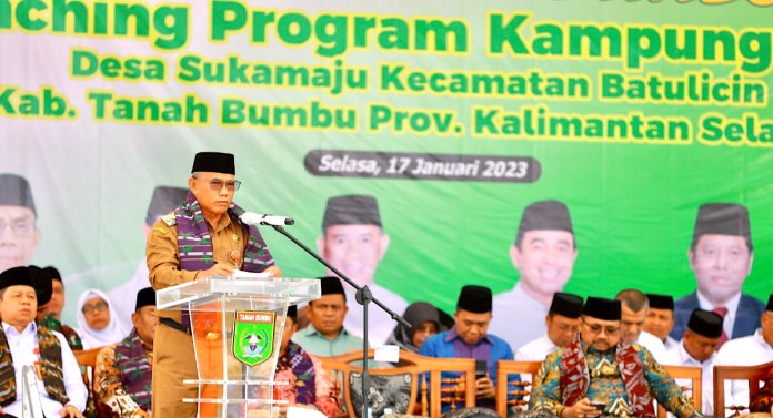 “Atas nama pribadi, masyarakat dan Pemerintah Daerah menyampaikan ucapan terimakasih dan selamat datang di Bumi Bersujud kepada Menteri Agama Republik Indonesia, bapak H. Yaqut Cholil Qoumas beserta rombongan,atas kunjungan dan silaturrahmi pada hari ini, dalam rangka Launching Kampung Zakat di Desa Suka Maju, Kecamatan Batulicin, Kabupaten Tanah Bumbu,” ujar Wabup.