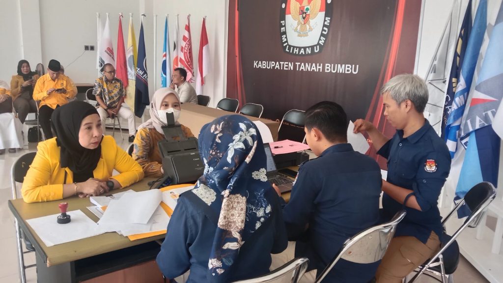 Setelah kami terima pemberkasan, kata Muhammad Sakra, setelah diteliti tim, berkas partai Golkar Tanah Bumbu dinyatakan lengkap. selanjutnya pihak KPUD Tanah Bumbu menyerahkan kembali tanda telah diterimanya pemberkasan yang diterima perwakilan partai Golkar dalam hal ini kepada Bendahara Partai Golkar Hj. Ainun Jariah.