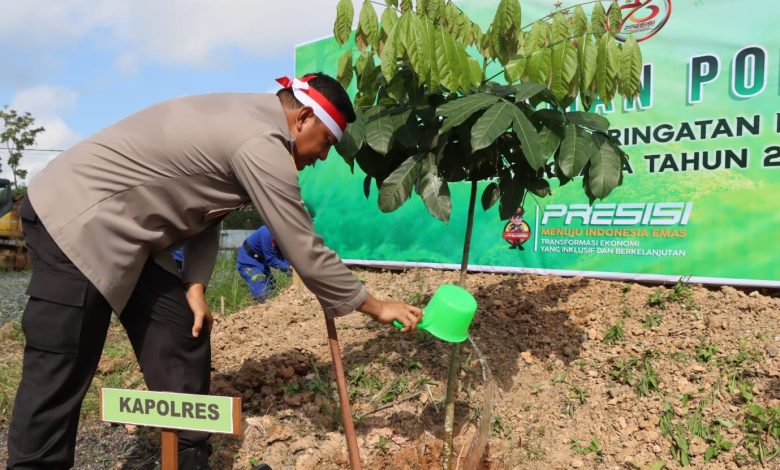 Kapolres Tanah Bumbu Pimpin Penanaman Pohon Hari Bhayangkara ke 78