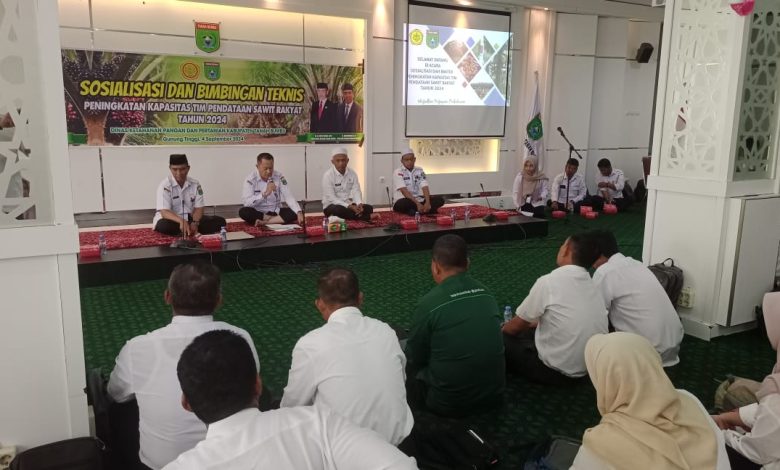 MeratusNews.com, BATULICIN – Pemerintah Kabupaten Tanah Bumbu (Pemkab Tanbu) melalui Dinas Ketahanan Pangan dan Pertanian menggelar sosialisasi dan bimtek peningkatan kapasitas Tim Pendataan Sawit Rakyat.