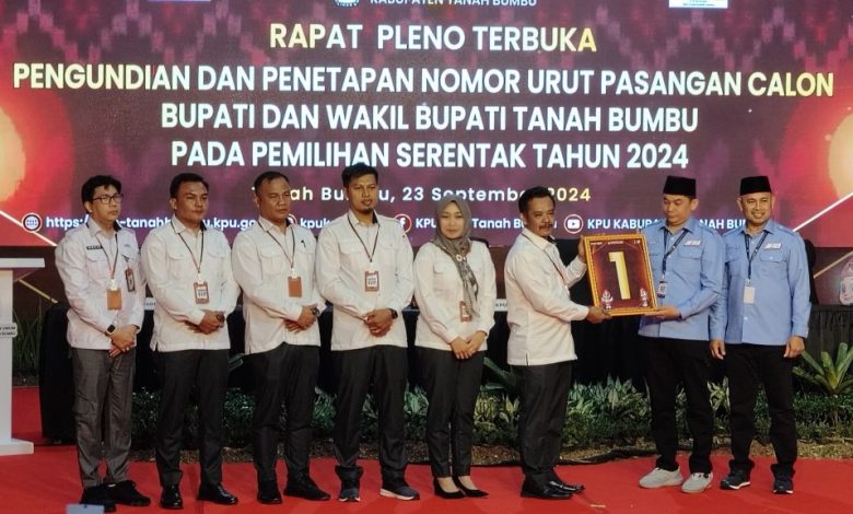 Menurut Ketua KPU Tanah Bumbu, Puryadi, pihaknya menetapkan nomor urut peserta Bupati dan Wakil Bupati Tanah Bumbu tersebut melalui Surat Keputusan KPU Tanah Bumbu berdasarkan berita acara nomor: 424/PL.02.3-BA/6310/2024