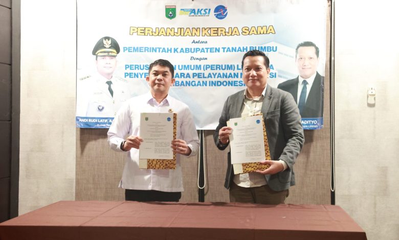 MeratusNews.com, BATULICIN – Bupati Andi Rudi Latif menandatangani Memorandum of Understanding (MoU) antara Pemerintah Kabupaten Tanah Bumbu dengan Perusahaan Umum (Perum) Lembaga Penyelenggara Pelayanan Navigasi Penerbangan Indonesia atau Air Nav diwakili oleh Direktur SDM dan Umum Perum LPPNPI Didiet Kus Sam Radityo, Kamis (24/7/2025) di Banjarmasin.
