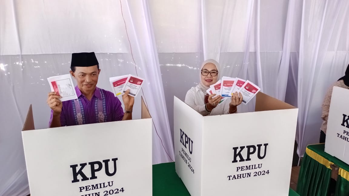 Pemilu 2024, Gubernur Kalsel Dan Istri Mencoblos Di TPS 01 Desa Keramat